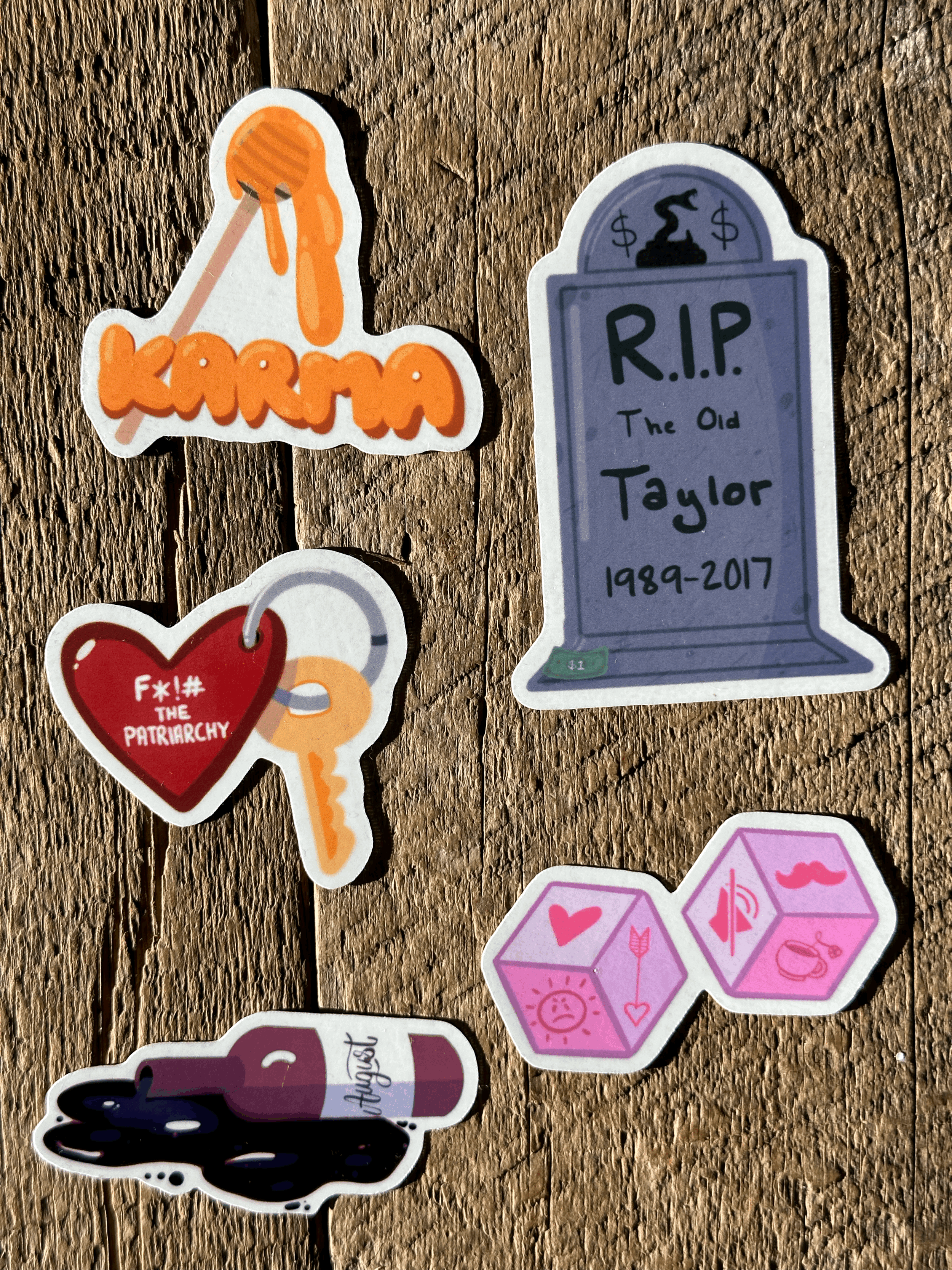 Introducing the Taylor Swift-Themed Vinyl Sticker Collection – Enter the many eras of Taylor Swift with these expressive and hand-drawn vinyl stickers. These captivating stickers are thoughtfully grouped on a sheet, allowing you to easily peel and place them on any surface, infusing a touch of Taylor's music and style. Alternatively, mix and match individual stickers to create your own personalized Taylor Swift montage. Perfect for showing your Swiftie Pride on your laptops, notebooks, water bottles, and more.
